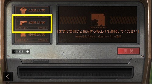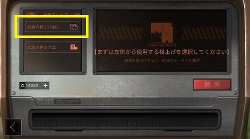 「武器の格上げ案2」が選択肢に表示されました。