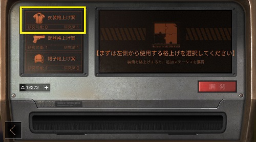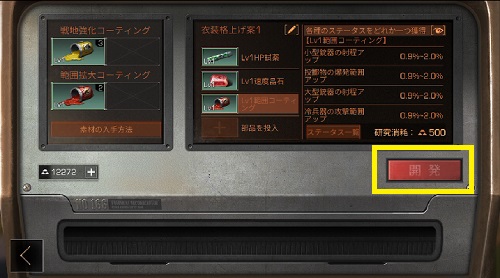 格上げ素材をセットしたら「開発」をタップ。