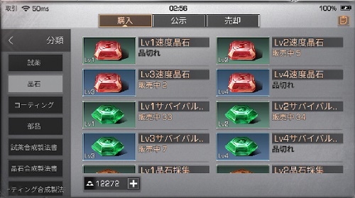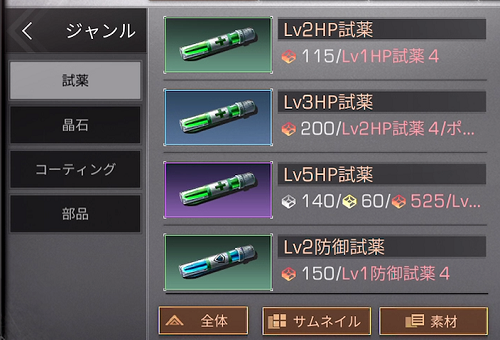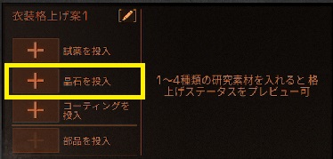 格上げ素材の「試薬」「晶石」「コーティング」が