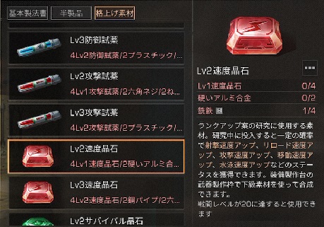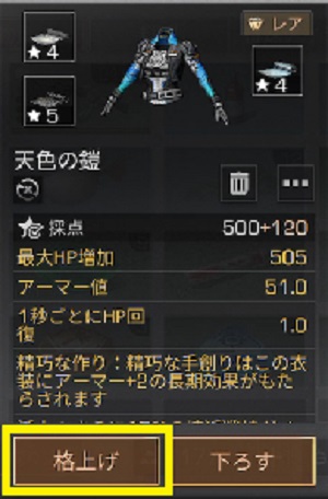 上級ランク格上げ素材製作方法