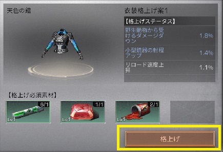アーマーに格上げ案が付加されました。