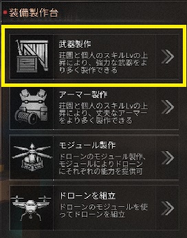 武器製作をタップ。