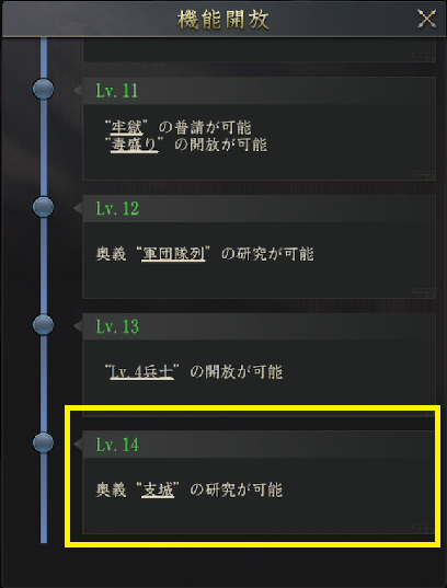 御殿レベルを14にする