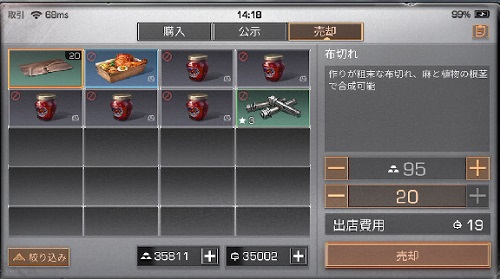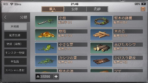 販売できるものは、全てレア、プレシャスアイテムです。フィールドで木、石、麻を採集すると一定確率で獲得できるアイテムです。獲得が難しいものほど高額ですが、その分なかなか出ないです。まとまった数を集めるには時間が掛かりそうです。