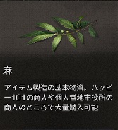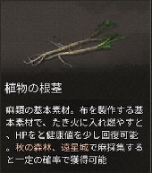 素材2つとも「秋の森林」で採集できます。レアアイテムの植物の根茎も麻を採集していれば自然に獲得でき非常に効率が良さそうです。