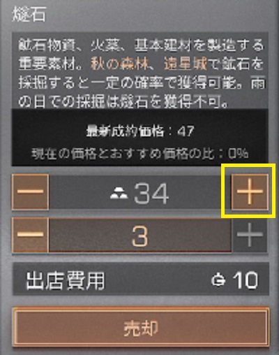 交易でアイテムを販売して金塊を集めますが、問題は何を売るかです。手間ばかり掛かってしまうのも効率が悪いし、かといって手間を掛けないと利益が少ない!!では、ちょっと意味がありません。何を売ったら良いか考える必要があります。