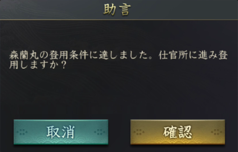 「登用継続」をタップ。「森 蘭丸」獲得です。